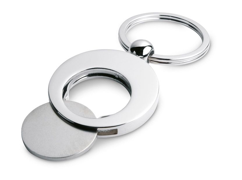 Breloc metalic cu moneda pentru caruciorul de cumparaturi.