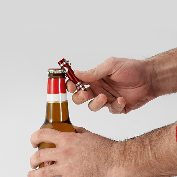 Breloc din metal cu LED si deschizator de sticle.