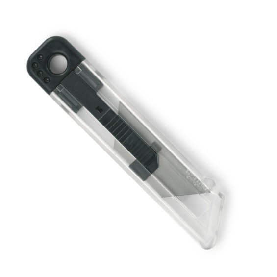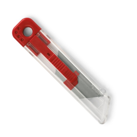 Cutit retractabil cu carcasa transparenta din plastic.