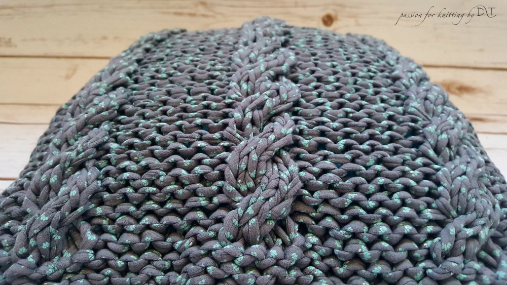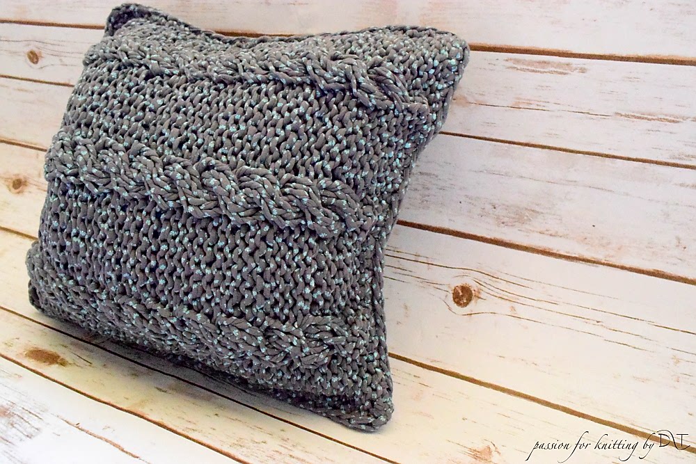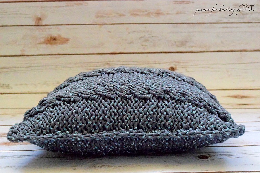 Grey mints knitted pillow, recycle cotton T-shirt yarn, size 40×40 cm.